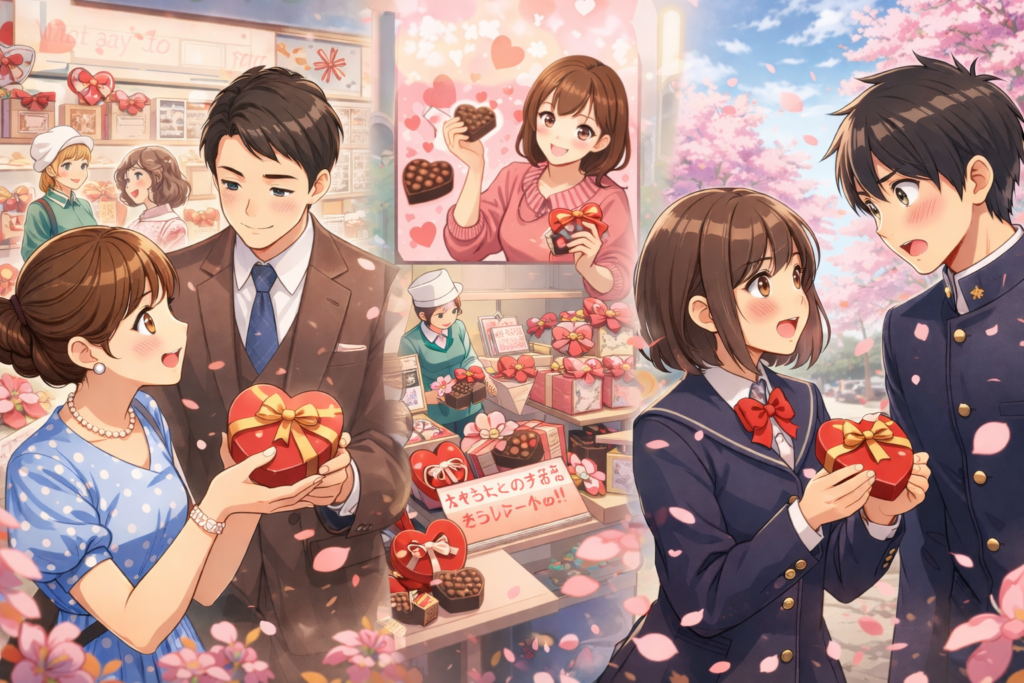 chatgptが描いた日本のバレンタイン、アニメ風(真ん中に異世界の文字)