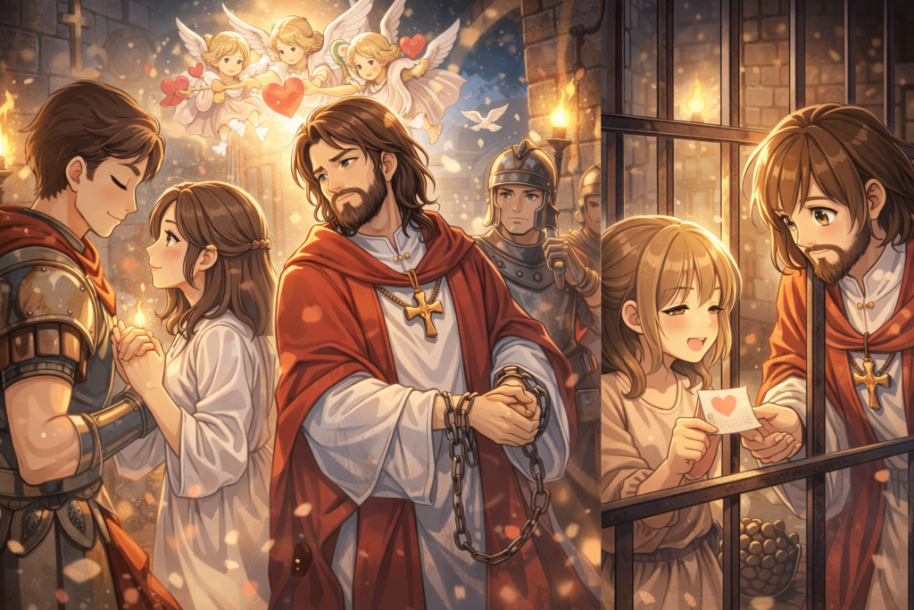 chatgptが描いた聖Valentinus(真ん中と右の人顔違うのでは…?)