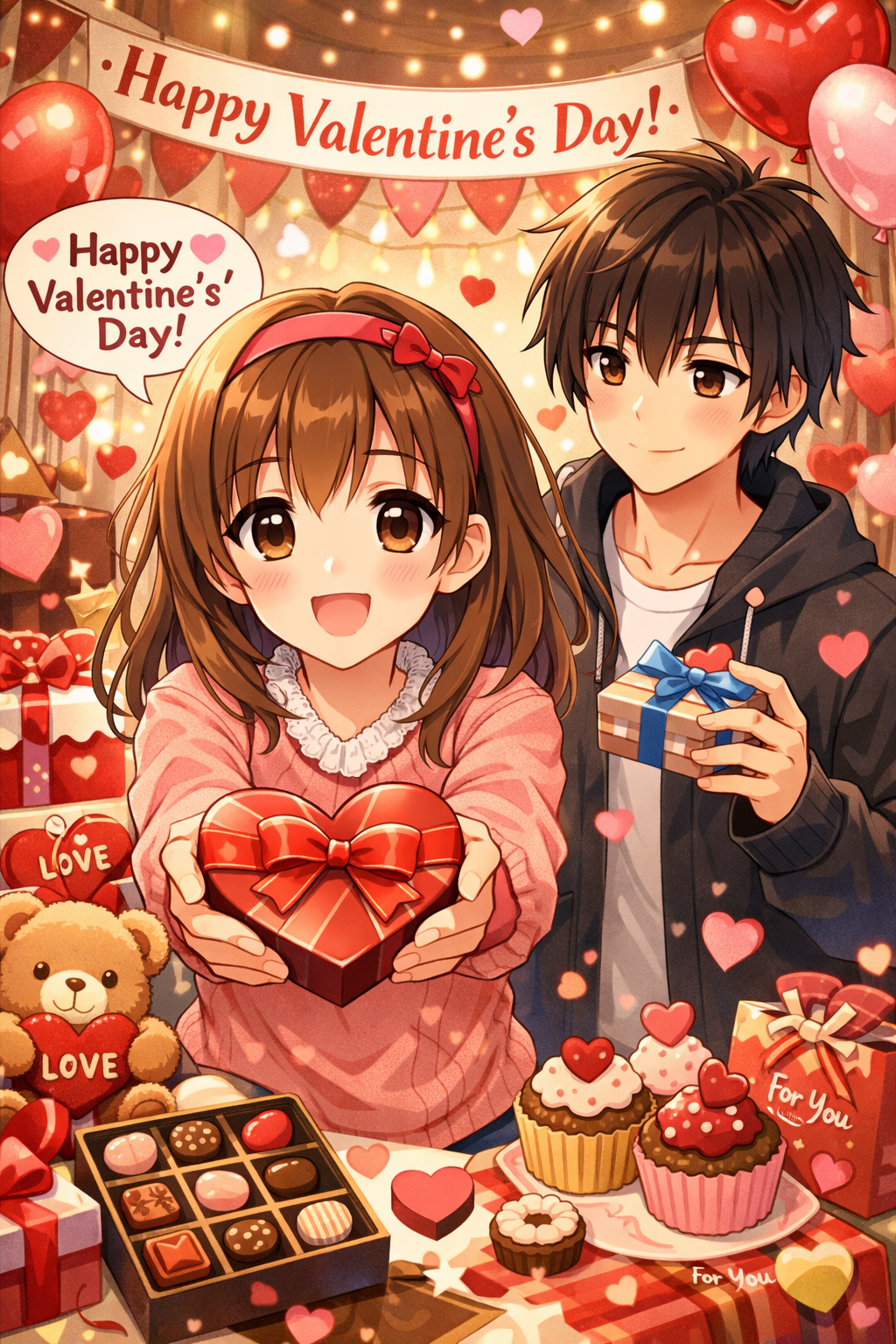 chatgptが描いた日本のバレンタイン、アニメ風(真ん中に異世界の文字)